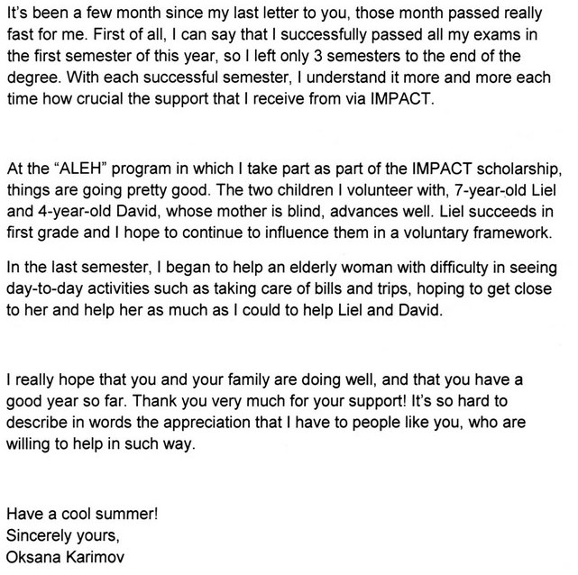 Letter from our soldier: Oksana Karimov (Summer 2017) Posted on September 12, 2017