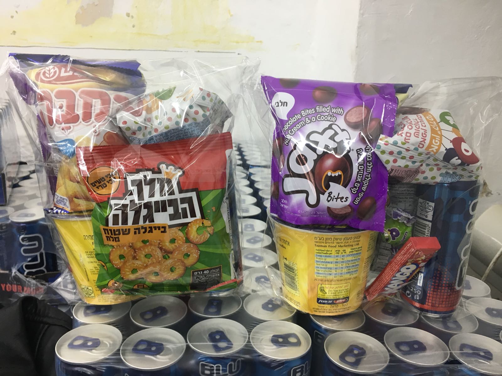 Last week, in preparation for Purim, Chayal el Chayal staff put together gift packages and traveled to multiple bases to distribute these gifts to soldiers. RJCF donated money to help treat 100 IDF soldiers to gift baskets in celebration of Purim, making them all happy and smiling.